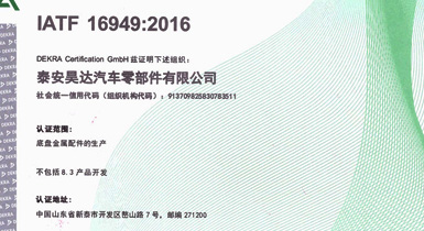 泰安昊達汽車零部件有限公司位于新泰市經(jīng)濟開發(fā)區(qū)嶅山路7號,公司成立于2011年,是一家生產(chǎn)中、重型卡車底盤鑄鍛件、焊接件、發(fā)動機配件的專業(yè)廠家,廠區(qū)占地面積101畝,2018年建設(shè)年產(chǎn)300萬件汽車零部件項目,項目總投資3.16億元,總建筑面積3.6萬平方米,是新泰市汽車裝配產(chǎn)業(yè)鏈的重點項目、2018年、2019年泰安重點項目,現(xiàn)已建設(shè)完畢,于2019年1月1日正式投入使用,設(shè)備新上覆膜砂自動化鑄造生產(chǎn)線1條、熱模鍛生產(chǎn)線6條、自動化焊接生產(chǎn)線10條、CNC加工設(shè)備200余臺套。 主要產(chǎn)品:中、重卡車底盤配件、轉(zhuǎn)向配件、中后橋氣室支架總成、中后橋配件、前橋轉(zhuǎn)向節(jié)臂、焊接配件、發(fā)動機配件。產(chǎn)品主要銷往中國重汽集團、市場份額約50%,位居行業(yè)鑄件產(chǎn)品前三。 公司擁有IATF16949:2016國際標(biāo)準(zhǔn)質(zhì)量管理體系認(rèn)證,擁有實 ......